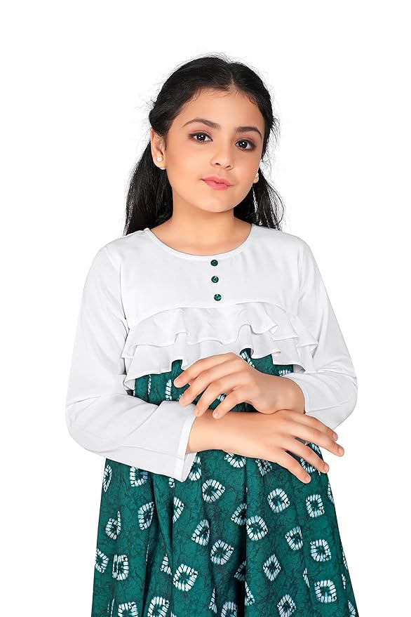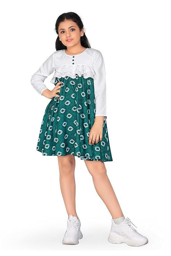 Fabric: Poly Rayon Style: A-Line Dress Sleeve: Full Sleeve, Neck: Round Neck Pattern: Bandhani Print Wash Care: Hand Wash/ Cold Water Wash