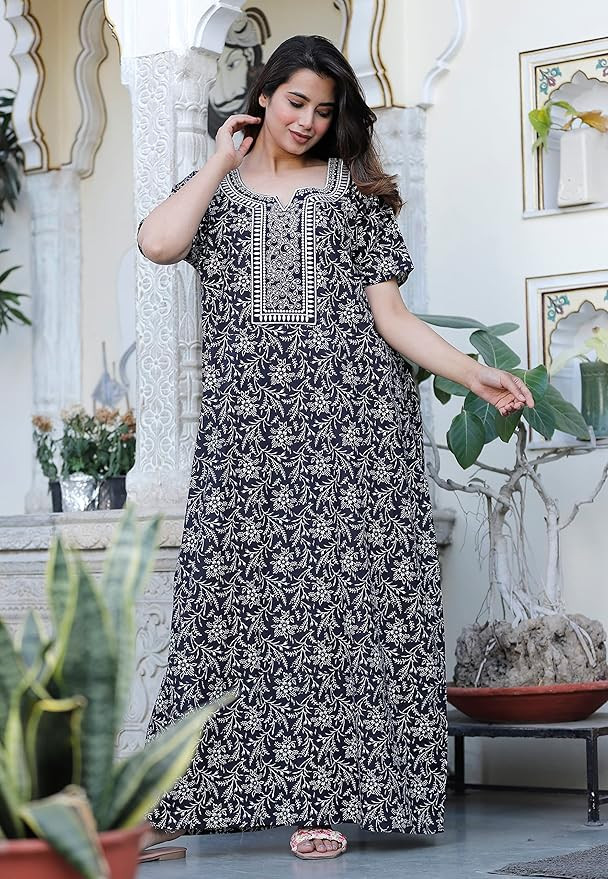 Pure Cotton Embroidery Nighty for Women's | Night Gown | Nighty | Nightdress | Maxi | Sleepwear |