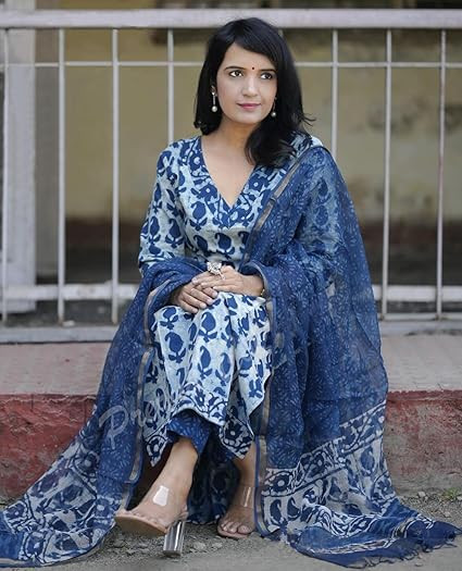 ★ Kurta and Pant set With Dupatta ★ Product Material :- Silk || Colour :- Blue ★ Style :- Straight Kurta || Sleeve Length :- 3/4 Sleeve || Bottom :- Pant