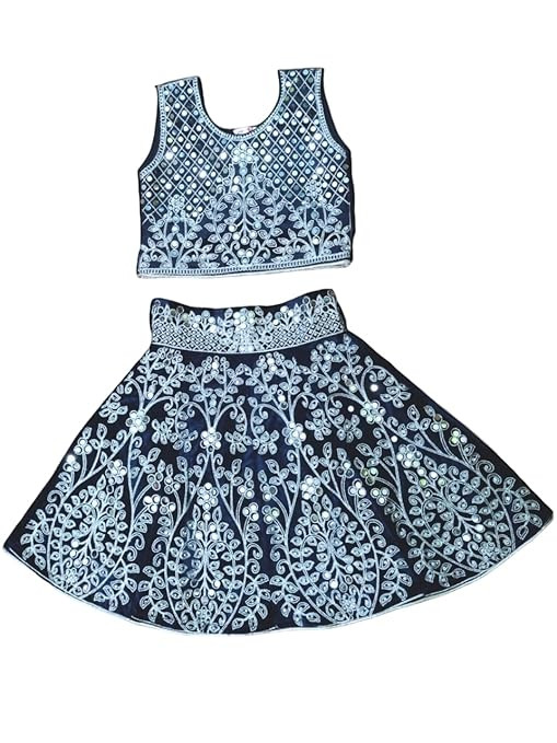 Indian Ethnic Choli and Lehenga Set, Colored with White Floral Print, Velvet