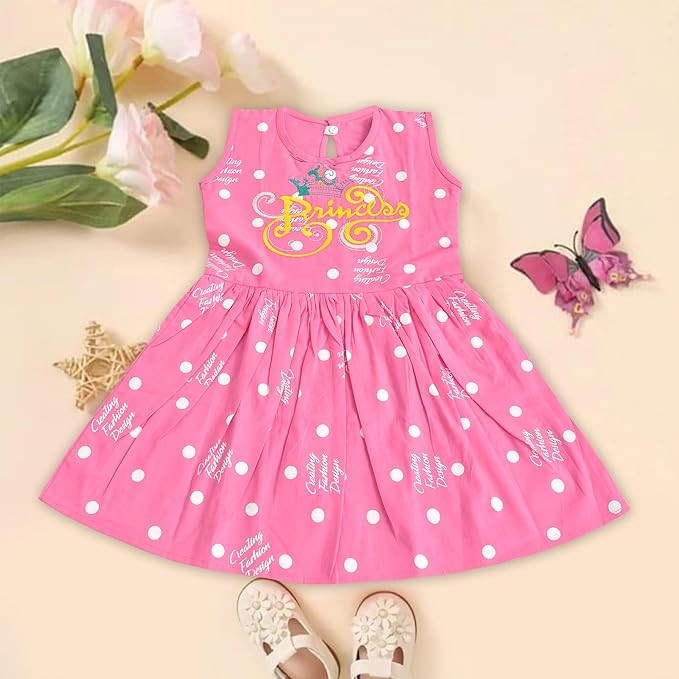 Baby Girl's Pure Cotton Embroidered Over-All Printed Frock