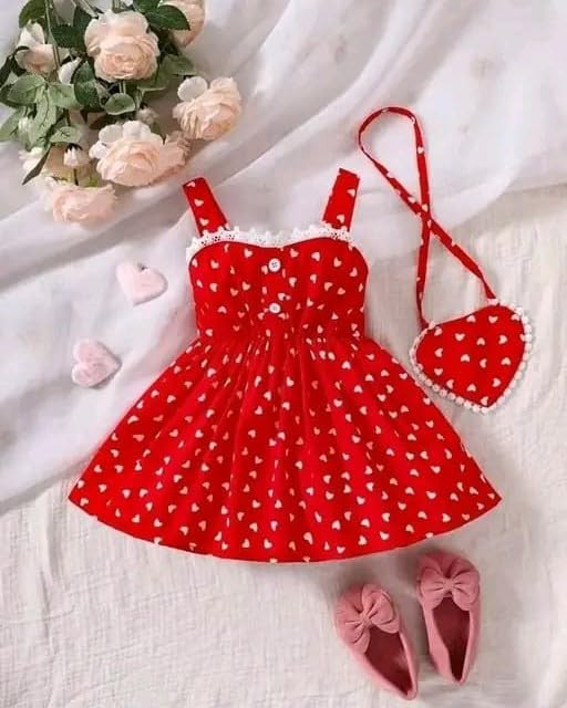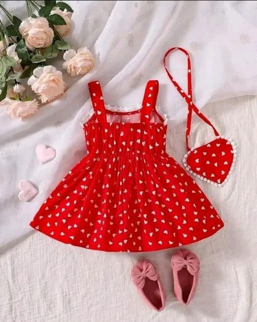 Adorable: This charming red dress with white heart prints is perfect for little fashionistas. Comfortable Fit: Made from soft and breathable fabric, it offers a relaxed yet stylish fit. Versatile: Pair it with ballet flats or sandals for a cute and playful look. Matching Accessories: Includes a coordinating handbag for a complete ensemble. Occasion-Ready: Ideal for parties, playdates, or any special occasion.