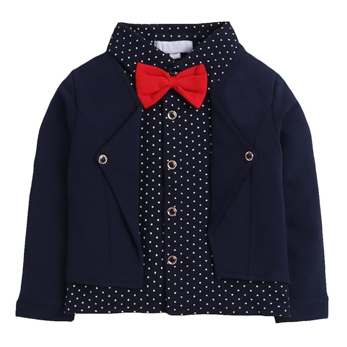 Boys Cotton Polka Dot Print Shirt and Pants Set with Bow