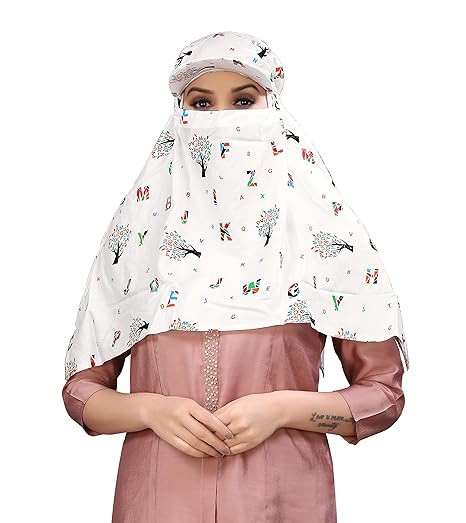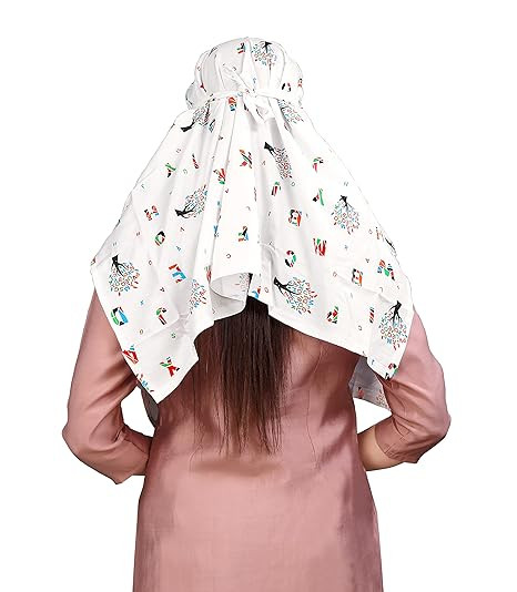 Cotton Short Scarf Cum Mask Universal Size/Usable for vehicle Driver for sunlight UV protection/White Printed Design