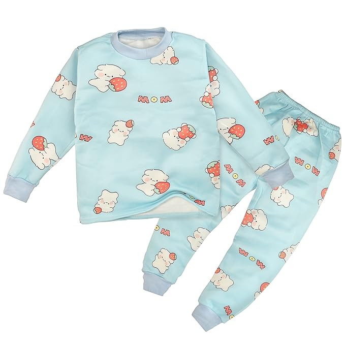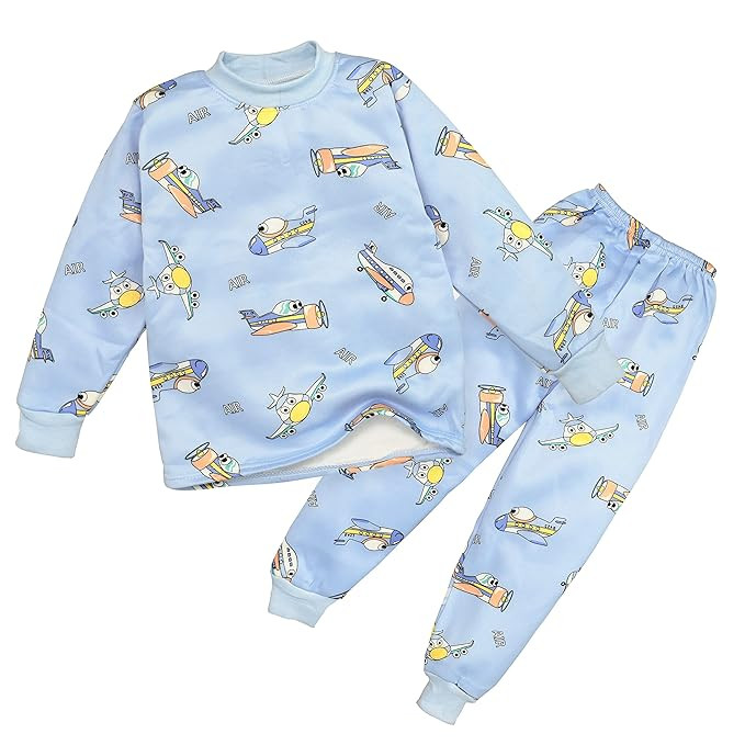 Bright and fun filled colorful cartoons, these full sleeve tee & jogger pajama PJ set are perfect for go getter boys and girls! Not only warm but also fun to wear. Let your little one cut capers with their buds in an upcoming event in these warm fur fleece full sleeve coordinated clothing set .