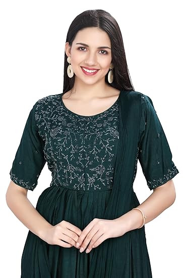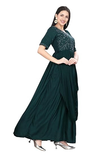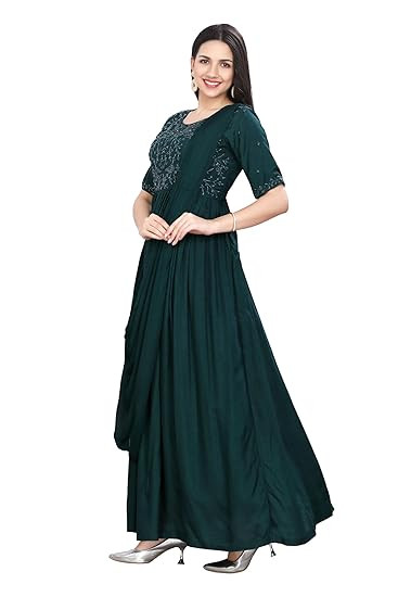 Style: Designer Gown with Attach Dupatta || Length: Full Length || Sleeves: Elbow Sleeves with Border