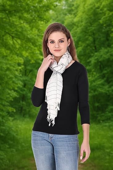 FWC Fill With Colours Stole/Scarf For Female Colour- White Soft Viscose Cotton Blend Ethnic Stripes Pattern