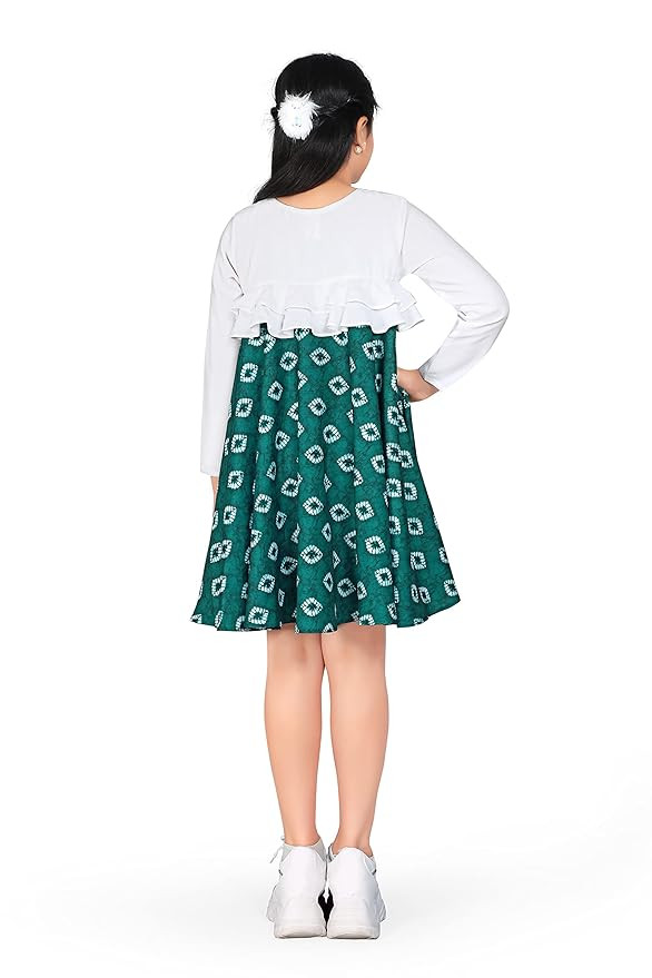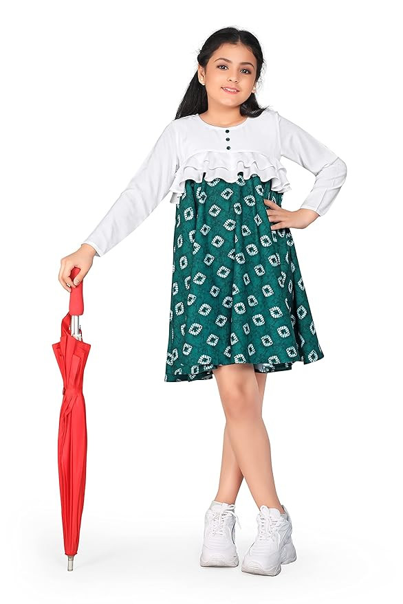 Fabric: Poly Rayon Style: A-Line Dress Sleeve: Full Sleeve, Neck: Round Neck Pattern: Bandhani Print Wash Care: Hand Wash/ Cold Water Wash