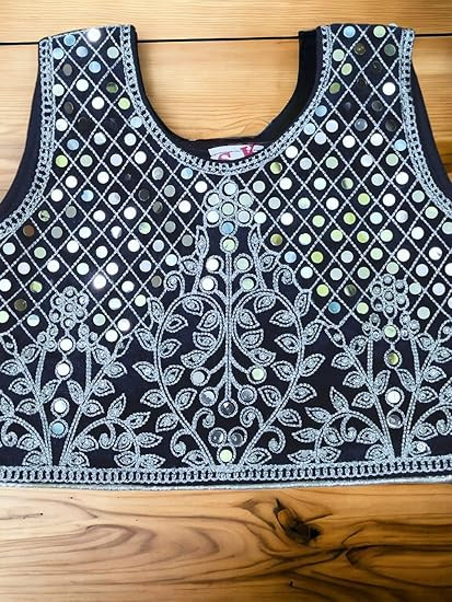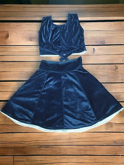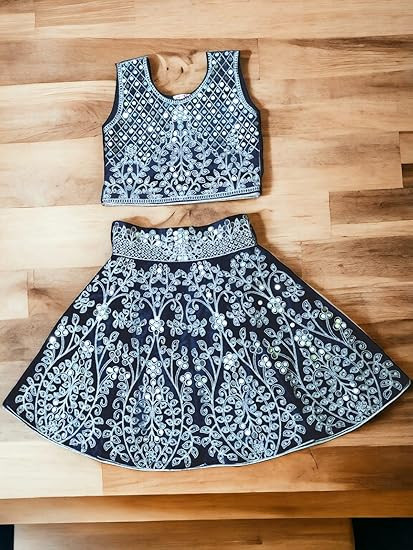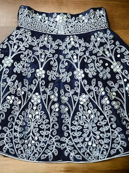 Vibrant Design: This two-piece garment features a stunning maroon base adorned with intricate floral patterns in contrasting shades of white and blue. Exquisite Craftsmanship: The top and skirt are meticulously crafted, showcasing the artistry of traditional Indian embroidery and textile techniques.