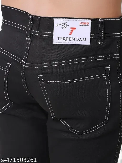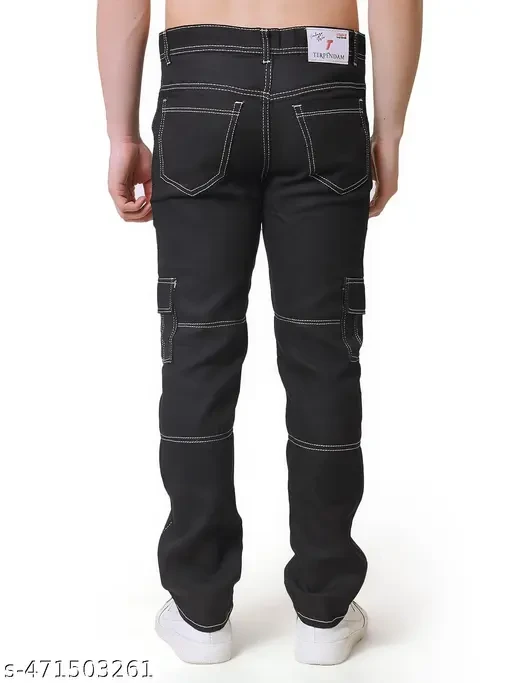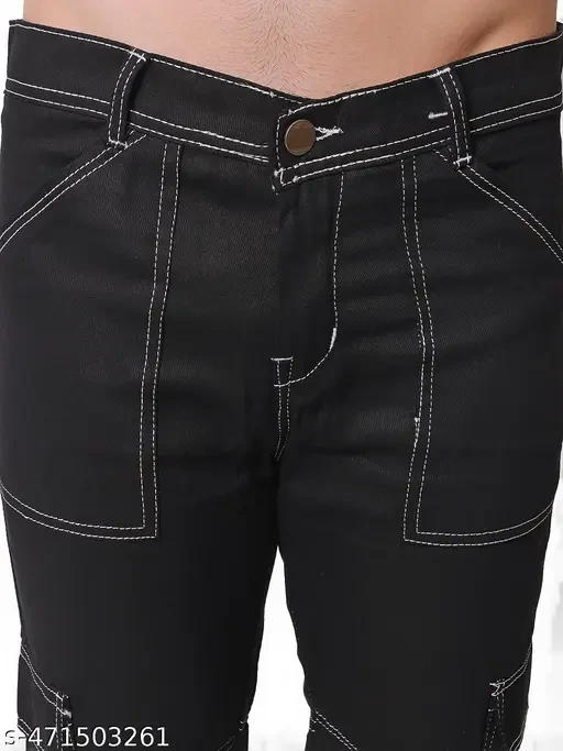 Name : MAAHIT Men's Slim Fit Black Cargo with White thread Cotton Lycra Jeans – Sizes 28-36