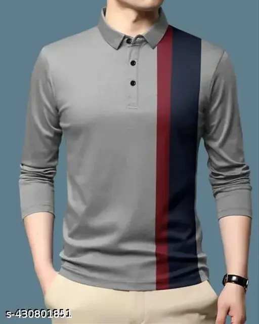 Men Polo Neck Full Sleeve Cotton Blend Trendy Self Stripe Pattern Stylish Smart Regular Fit Tshirt