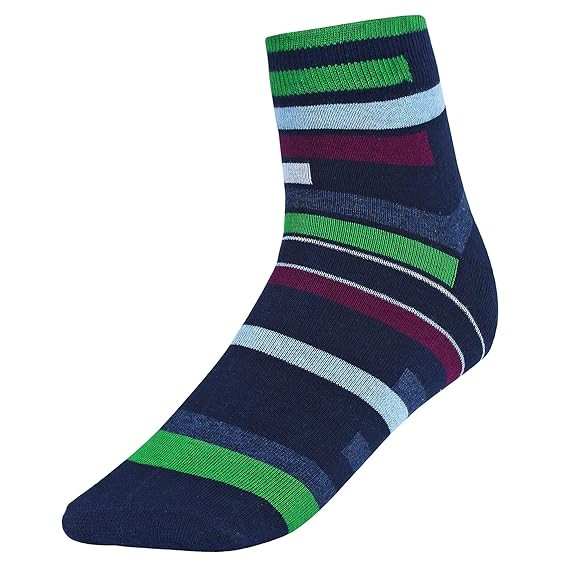 Content: Includes 3 Pairs of Multicolor Cushion Socks Size: Free Size Material: Made from 100% Combed Cotton for Softness & Superior Absorption Elastic: Premium Elastic for Superior Grip and Durability Design: Terry Cushion at the Bottom & Breathable Mesh on Top