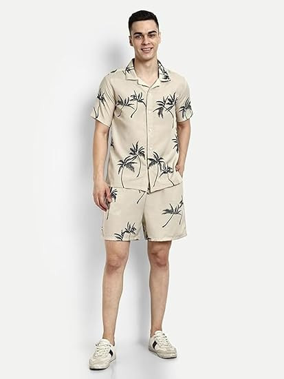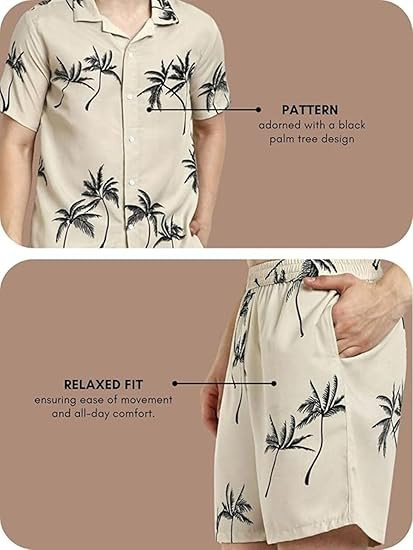 Pattern:- Fancy Palm Tree Printed Shirt & Shorts combo || Fit Type:- Regular Fit