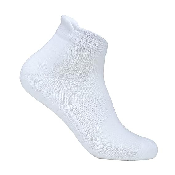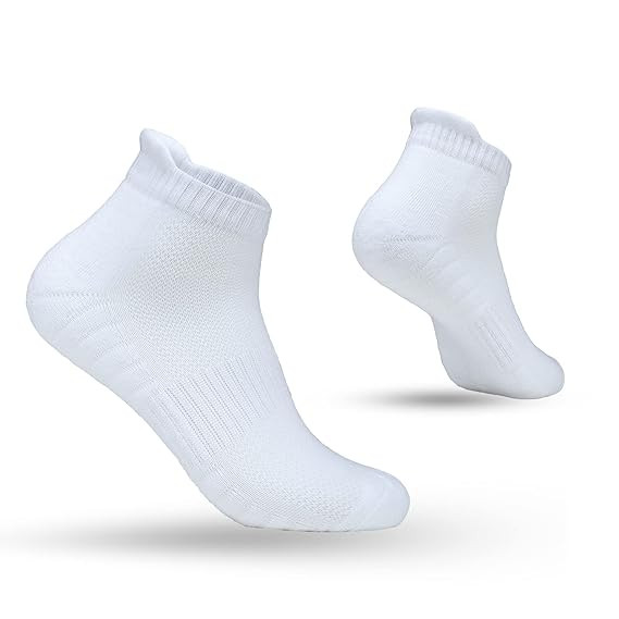 【Material Composition】:Unisex Athletic Running Sports Socks Material Composition: 80% Cotton+17% Nylon+3% Spandex 【High Quality】: Made of high quality combed cotton.High quality material makes athletic socks so breathable,comfortable to wear all day without irritating your feet skin. Ultra Air-Permeability and moisture wicking performance keeps your feet dry and odor free throughout the whole day 【Special Design of Running Socks】:The hand-lined seamless toe ensures protection against yarn chaffing and irritation caused by traditional toe seams. reinforced heel and toe for durability. High heel tab and extra deep heel pocket prevent socks from slipping down, enhanced Elastane provides additional no-slip security. 【Men's and Women's&Four Seasons】:Unisex sports socks are not too thick or too thin, warm in winter and breathable in summer. Professionally customized for all sports, mountain climbing, hiking, jogging, running, tennis, marathon, golf, cycling all sports. simple style socks fit any everyday dressing for adults and teenagers. 【Package Includes】: 3 Pair of Socks, Color - White