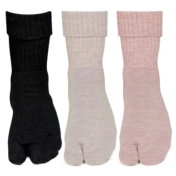 Fabric Composition: Wool & Spandex: These woolen socks are made up merino wool which Owing to its quality, versatility and sustainability makes it perfect choice for every season with spandex which provides required strechablity for a perfect fit look which hugs your feet gently. These socks are warm & thick socks with terry/towel inside the socks gives cushion like feel. Soft & Light Weight: Merino wool is less coarse than normal wool which feels softer against skin without causing any irritation. Its fibers are also thin and lightweight, adding overall comfort of wearing socks all day .With thumb support, this socks are good for everyday use. Breathable and Odor Free – These wool socks fabric is extra porous which let you skin breathe to keep it dry and fresh. With excellent moisture wicking properties & antimicrobial, it also prevents the foul smell from building up by deterring the growth of odor causing -bacteria. Cushion with stylish Cuff - Comfort: These lightweight & soft woolen socks contain terry towel inside which gives your feet the comfort of cushion with turnover top which adds to the comfort securing the socks in place while also adding some style to the socks in the classic fluffy bed sock fashion. Socks for every season: With number of benefits we can count on, Who says woolen socks are only for summer apart from providing the coziest warmth in summer, these socks are for those who enjoy hiking and due to its water repellency running during the warm weather which absorb water and sweat making it a perfect pick for all year –round.