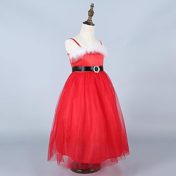 The Waist Band Has An Attached Sash With A Sparking Flower Shape Decorated Color: Red Attached White Faux Fur Trim At Chest Size: You Can Choose Gorgeous Dress With A Delicate Tulle Type Overlay,Spaghetti Shoulder Straps Perfect For Any Special Occasion, Such As Wedding,Christmas,Party, Birthday