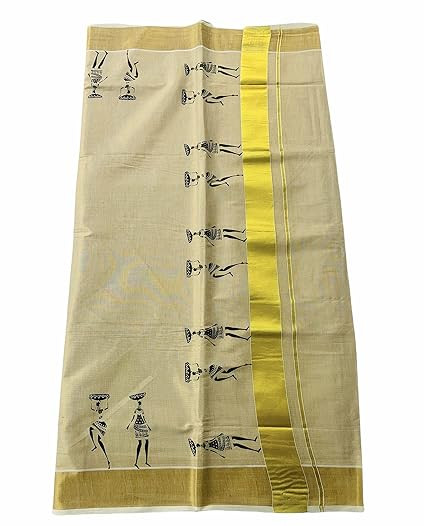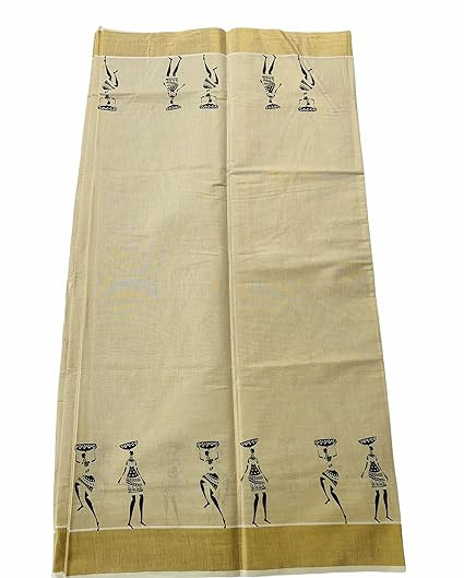 Saree Length 6.25 Metre which includes Running Blouse (Saree :5.5Metre Running Blouse 0.75Metre, no extra blouse). 100% Tissue Kerala Kasavu Saree with Running Blouse. Traditional design with the Premium Quality Fabric, feel the Soft Material. Don’t Iron directly to Golden Zari, use paper or clothe on top of Golden Zari. Wash care - Hand wash, avoid brushing, dry in shade. No machine wash.