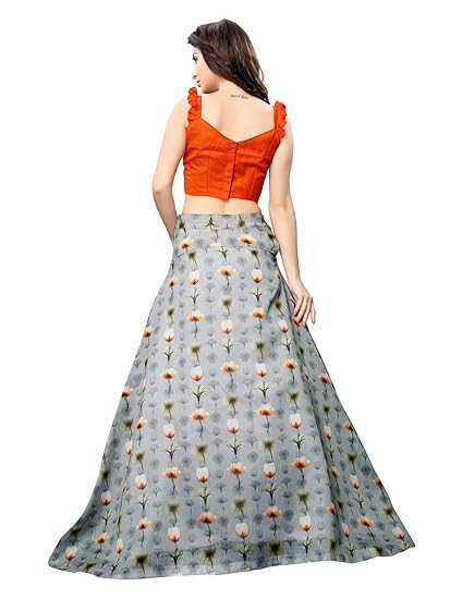 Color Name: Grey, Beige, Multi Material: Art Silk No style Name Machine wash Ceremony wear Type:: lehenga- stitched, Blouse- unstitched