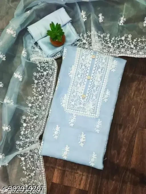 Name : Unstiched Exclusive Super Best Collections Organza Party Wear Fancy Patiala Pakistani jaipuri All Occastions Organza Suits Women's Aqua Blue Embellished Embroidered Organza Suits & Dress Materials