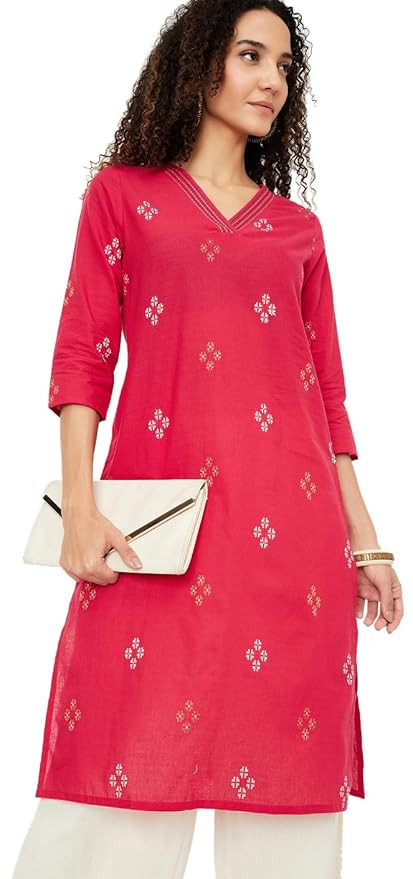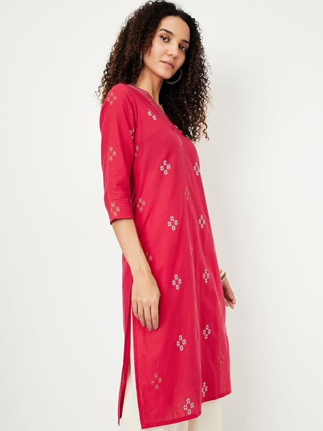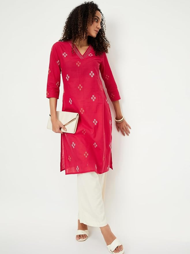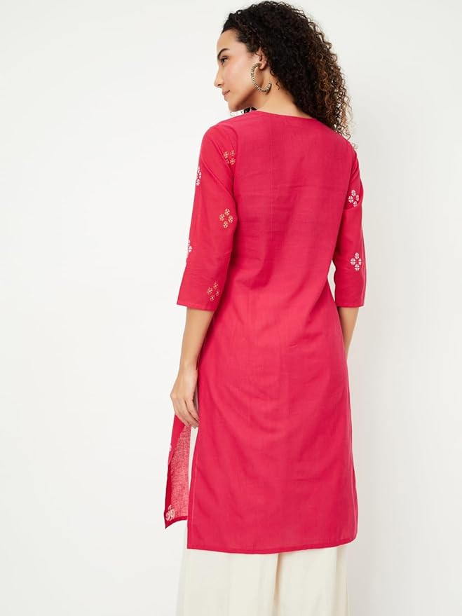 Women Embroidered Straight Kurta Colour : Pink Design : Embroidered Fabric :Cotton Wash Care: Machine Wash