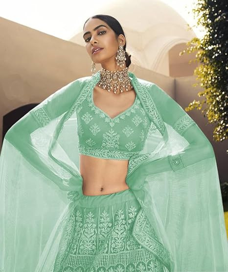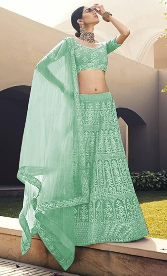 Material:Net||Color:LightGreen|| Type:Semi-stitched||Pattern:Embroidered||