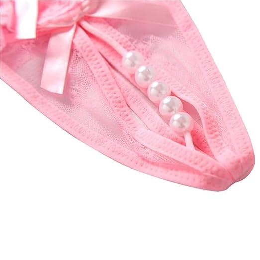 Women’s Fancy Lace G-String Thong Panty Bikini Underwear with Pearl | Sexy Hot Brief for Honeymoon, Seamless, Comfortable Lingerie