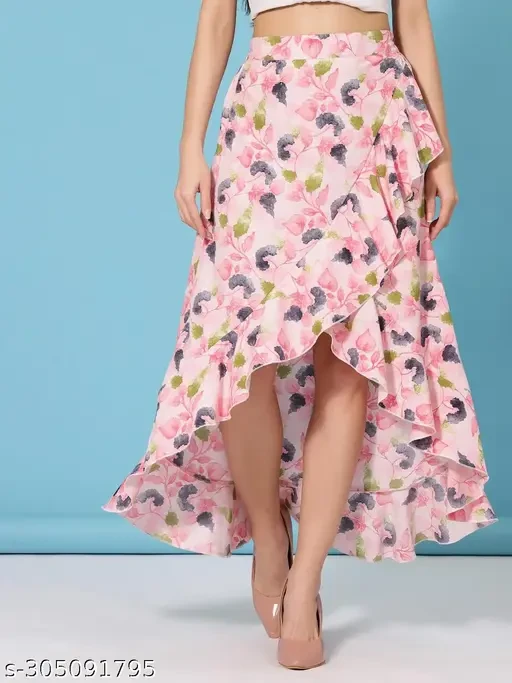 Floral Print A-line Knee Length Skirt in Crepe fabric
