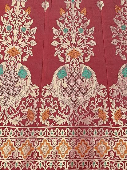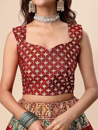 Choli Fabric : 100% Jacquard, Dupatta Fabric : 100% Jacquard Lehenga waist: Customizable upto 42, Lehenga length: 44 Inch, Dupatta Width: 57cm, Flare: 2.50 mtr, Dupatta length: 2.20 mtr, Choli length: 1 mtr