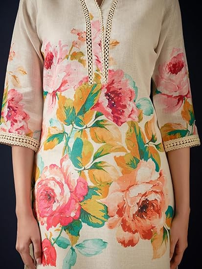 Color :- Off White || Top Fabric :- Linen || Bottom Fabric :- Pure Cotton || Dupatta Fabric :- Poly Chiffon Top Pattern :- Printed || Bottom Pattern :- Self Design || Print Type :- Floral || Dupatta Pattern :- Printed