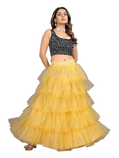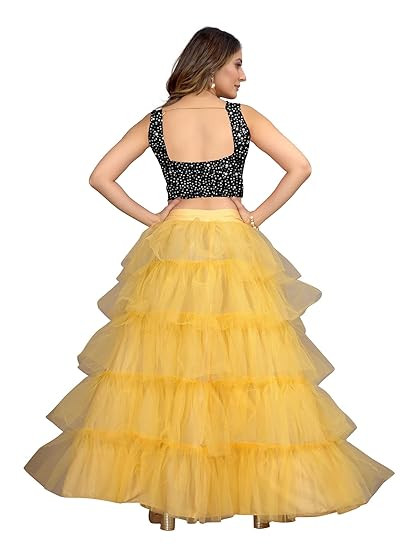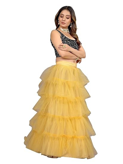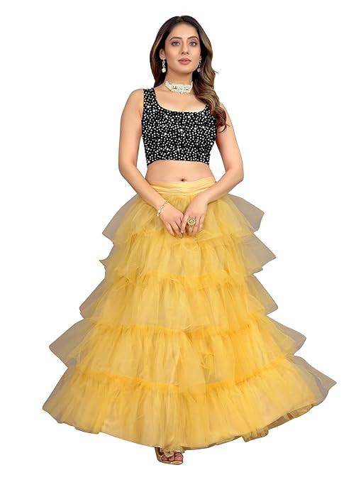 Women'S Net Frill Work Semi Stitched Lehenga And Choli Set FRILL-CHIKU-LEHENGA