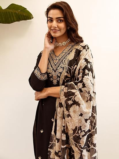 Color : Black || Top & Bottom Fabric : Viscose Rayon || Dupatta Fabric : Organza Top & Bottom Pattern : Embroidered || Print Type : Ethnic Motifs