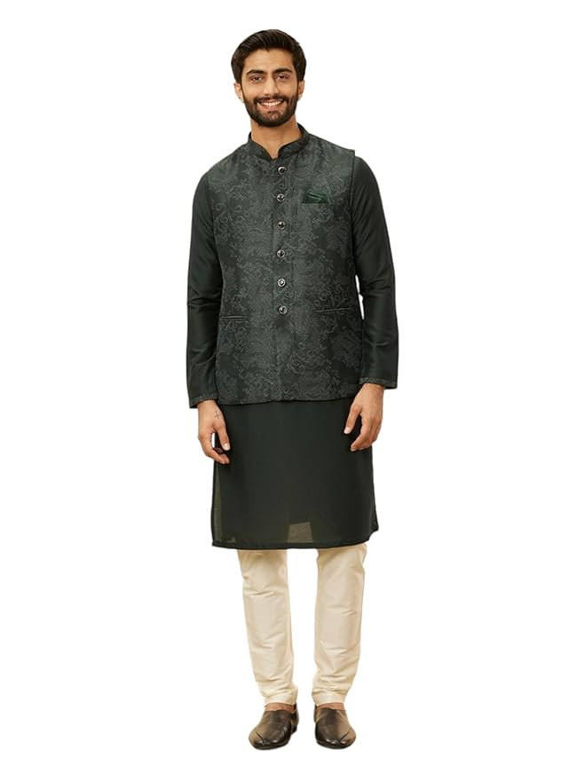 Bel Buti Patterned Floral Design Kurta Jacket Set for Men's